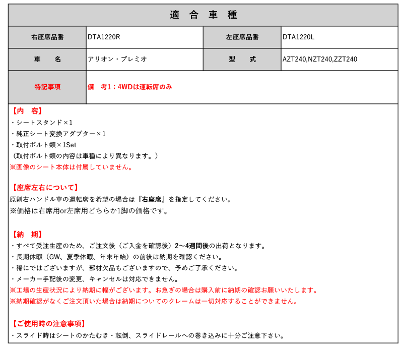 [N SPORT]AZT240,NZT240,ZZT240 アリオン・プレミオ純正シート用ゲーミングシートスタンド(キャスター付き)[6×6ポジション]